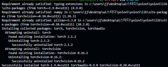 WARNING: Failed to remove contents in a temporary directory 'C:\Users\jj\Desktop\AI스터디\YOLOv5\yolov5\Lib\site-packages\google\~upb'.