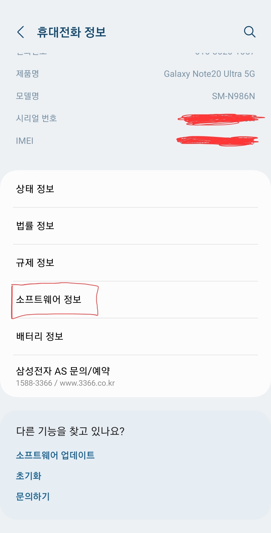 안드로이드 폰에서 설정 -> 휴대전화 정보로 들어간다.
