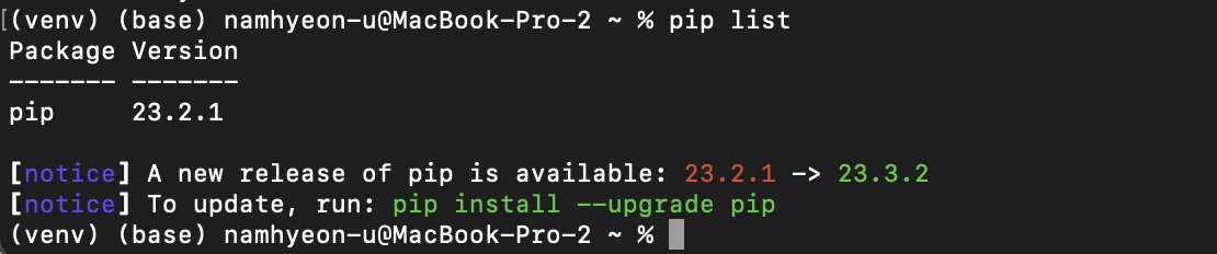 pip list 명령을 통해 설치된 라이브러리를 확인해보자.