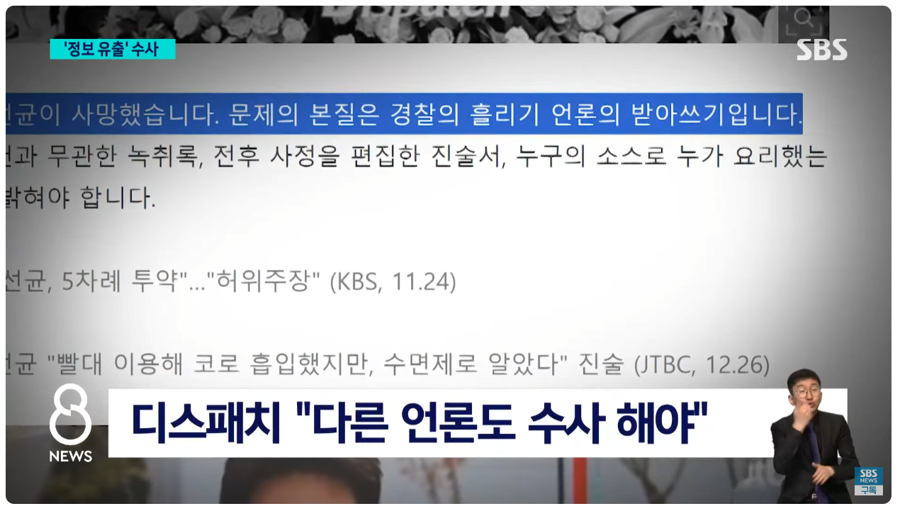 초동수사에 보고된 내용이 그대로 적혀서 기사화 됨